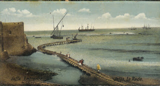 Да, в конце 19-го, начале 20-го веков нестандартная, возможно чисто грузовая узкоколейка проходила еще дальше от вокзала, по яффской улице Разиель, потом по набережной Яффо, под мечетью Бахр с минаретом, и поворачивала вправо, в море на пирс.